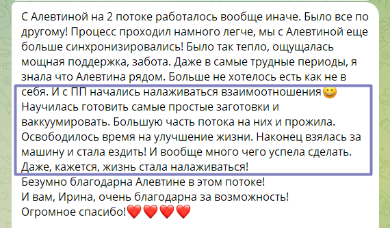 — Нет! На курсе не будет сложных рецептов и необходимости много готовить каждый день, мы не кулинарный интенсив. Вся еда — простая, с возможностью выбрать доступные и привычные вам продукты, сделать из них заготовки и собрать себе здоровый обед или ужин максимум за 10-15 минут.