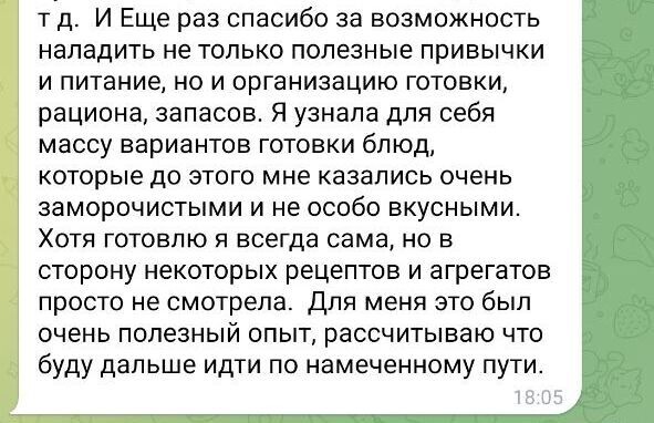 В общем, индивидуально составленное меню — это хорошо оказанная услуга здесь и сейчас, но никто по чужому списку еды не питается дольше 7-10 дней. А потом вмешивается жизнь.